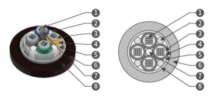 GYDTA ऑप्टिकल केबल की संरचना उच्च मापांक सामग्री से बनी एक ढीली ट्यूब में 4, 6, 8 और 12-कोर ऑप्टिकल फाइबर डालना है, और ढीली ट्यूब को जलरोधी यौगिकों से भरना है। केबल कोर का केंद्र एक धातु सुदृढ़ीकरण कोर है। कुछ निश्चित संख्या में कोर वाले कुछ केबल कोर के लिए, धातु सुदृढ़ीकरण कोर के बाहर पॉलीथीन (पीई) की एक अतिरिक्त परत निकालने की आवश्यकता होती है। एक कॉम्पैक्ट और गोलाकार केबल कोर बनाने के लिए ढीली ट्यूब और भरने वाली रस्सी को केंद्रीय सुदृढ़ीकरण कोर के चारों ओर घुमाया जाता है। केबल कोर के भीतर अंतराल जल प्रतिरोधी भराव से भरे हुए हैं। लेपित एल्यूमीनियम टेप (एपीएल) को अनुदैर्ध्य रूप से लपेटा जाता है, और फिर केबल बनाने के लिए एक पॉलीथीन म्यान को बाहर निकाला जाता है।