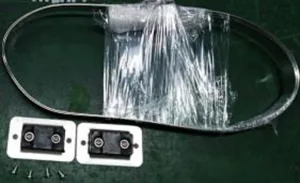 ⚫ जब तक कि इसे उपवास न किया जाए, तब तक एडेप्टर बकल के साथ प्रीफॉर्म्ड प्लग के शरीर को संरेखित करें। एक ही तरह से दो धूल कवर को कनेक्ट करें।